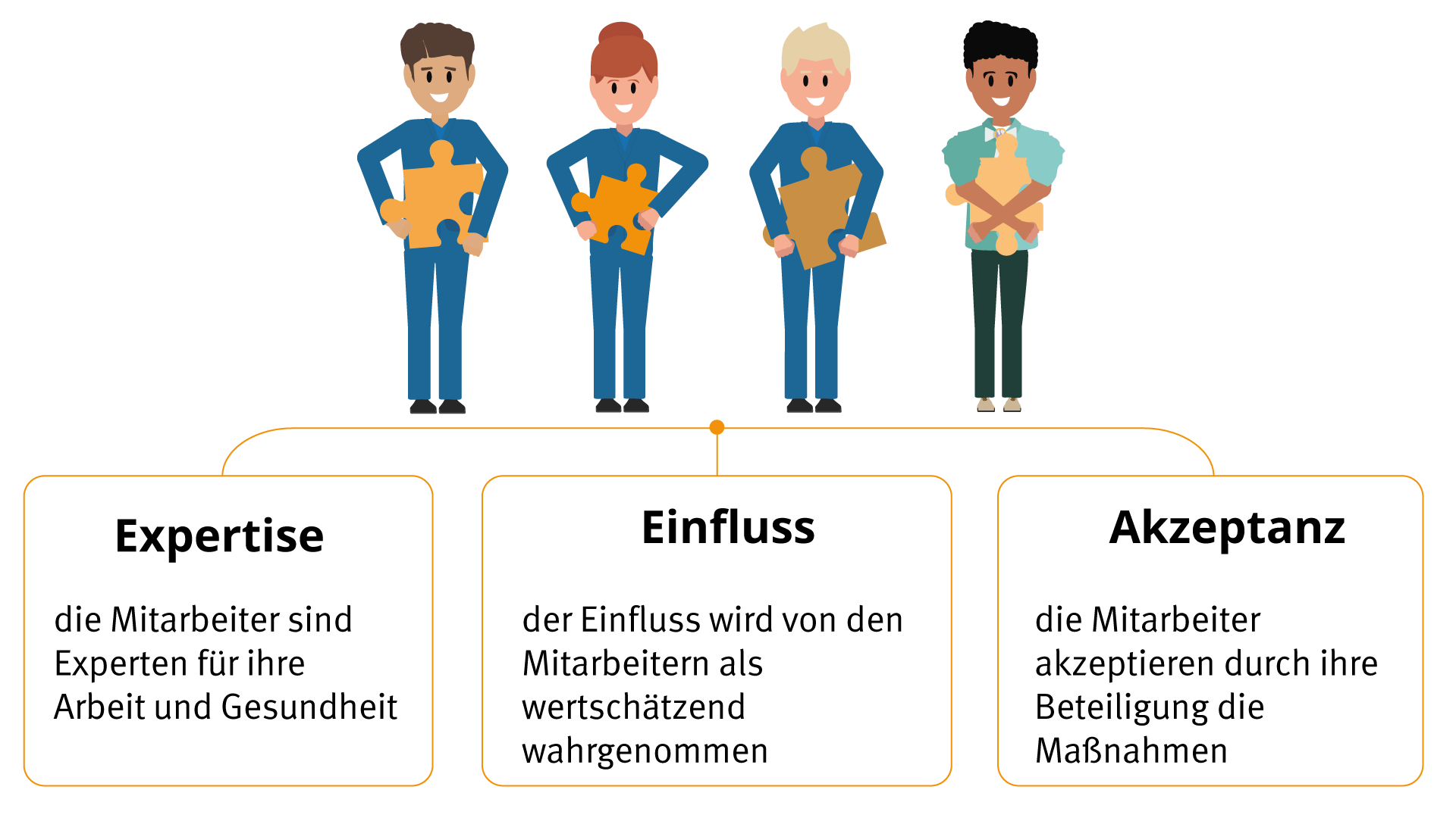 Die aktive Einbindung der Beschäftigten in betriebliche Entscheidungen ist gesundheitsfördernd. Ihre Einbeziehung in sicherheits- und gesundheitsrelevante Prozesse stellt ein wesentliches Merkmal der gesundheitsgerechten Organisation dar.